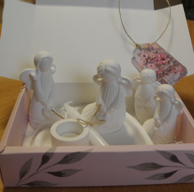 Geschenke-Set Vier Licht-Engel 2 Sternen-Engel und 2 Herz-Engel