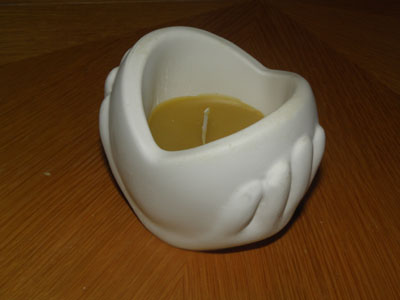 Hände halten Herz mit Kerze aus reinem Bienenwachs