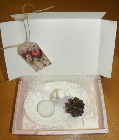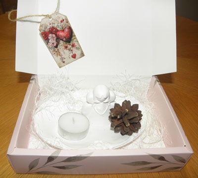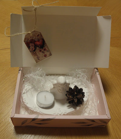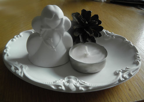 mit Engel, Zapfen und Teelicht