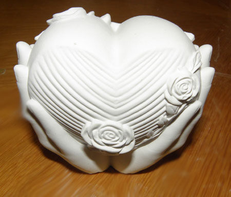 Geschenk-Set Skulptur "Zwei Hände halten Rosen-Herz" einem Geschenk-Karton und einer kleinen Karte für "Herzvolle Grüße".