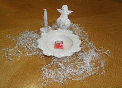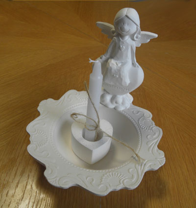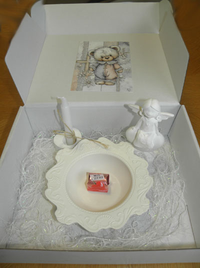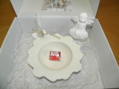 Geschenke-Set einem lächelnden Engel, der auf einem Herz sitzt
